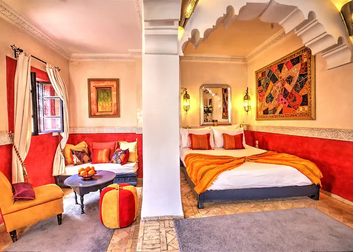 The 3-star Riad Elli Marrakech Marrakesh, situated 2.5 km from Menara Mall, welcomes guests with yoga classes, spa therapy, and a golf course. Located in the Medina district of Marrakesh, within walking distance of places for heritage tourism such as the ruined Badi Palace, this Marrakesh riad features Moroccan dishes.