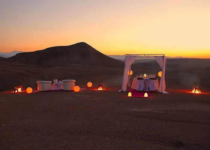 Die Villa Hotel Agafay Luxury Camp mit 1 Schlafzimmern eignet sich ideal für 2 Personen, ist 50 m² groß und blickt auf die Berge. Die Villa Hotel Agafay Luxury Camp liegt circa 57 Autominuten vom Flughafen Marrakesch Menara entfernt.